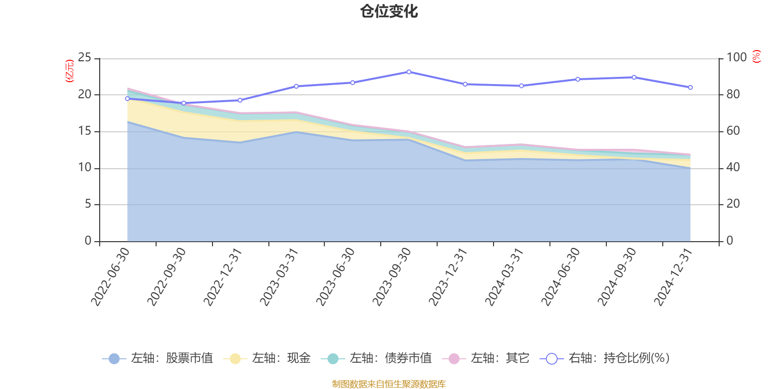 据定期报告数据统计,成立以来平均股票仓位为84.35%,同类平均为87.21%。2023年三季度末基金达到92.61%的最高仓位,2022年三季度末最低,为75.54%。